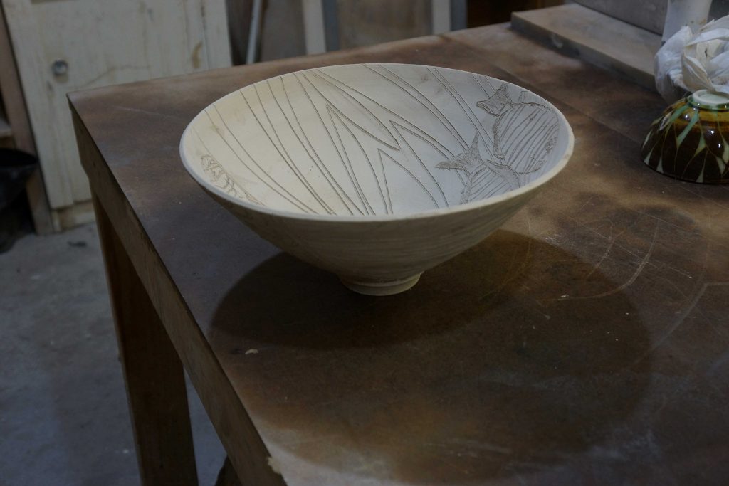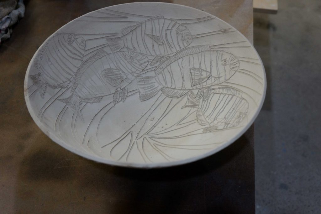 Parrot fish : Large Raku bowl. Another item needing to be bisqued.