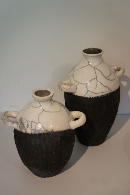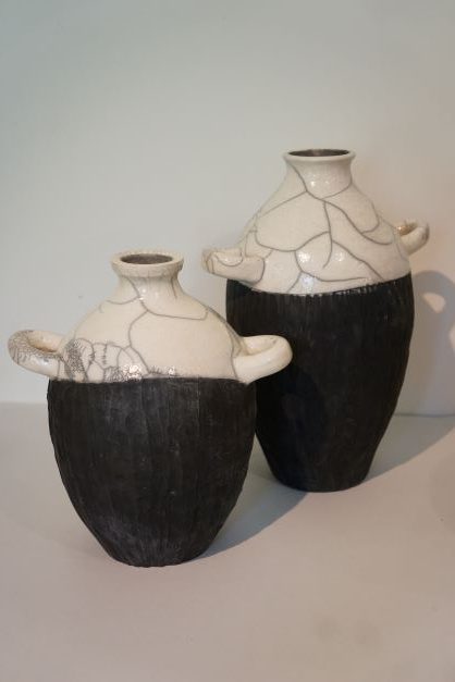 Raku Vases : Black and white